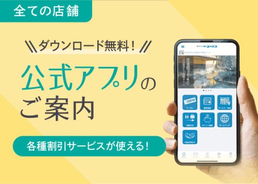 お得に使えるクーポンの配信も随時実施しておりますので、もっと便利でお得に天然温泉をご利用いただけます。